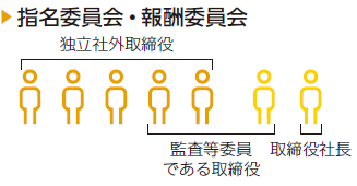 当社は、取締役の人事・処遇に係る運営の透明性を高め、経営機構の健全性を維持する目的から、取締役会の諮問機関として「指名委員会」と「報酬委員会」を設置しています。両委員会のメンバーは、すべての独立社外取締役(監査等委員である取締役を除く)、すべての監査等委員である取締役及び取締役社長の計7名で構成し、委員長は独立社外取締役より選出することとしています。