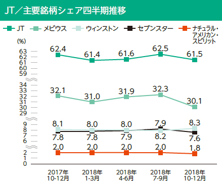 紙巻シェアにつきましては、主要ブランドの堅調なパフォーマンスにより、前年度比0.5%ポイント増の61.8%となりました。