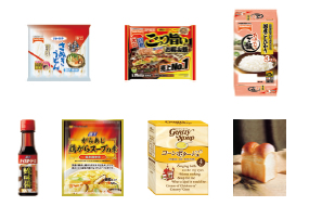 当年度におきましては、引き続き冷凍麺、冷凍米飯、パックご飯、焼成冷凍パン等のステープル(主食)に注力した商品展開を図りました。具体的には、有名ラーメン店とタイアップし、本格的な中華麺を楽しめる「麺屋武蔵監修 魚介豚骨チャーシュー麺」、肉をメイン素材としたボリューム満点の「肉めし」など、家庭用冷凍食品及び家庭用常温食品について、新商品25品、リニューアル品49品を発売しました。また、冷凍うどんの夏場の需要喚起及びテーブルマークブランドの認知向上を目的に、TVCMを中心としたメディア展開及び消費者キャンペーン等を実施しました。